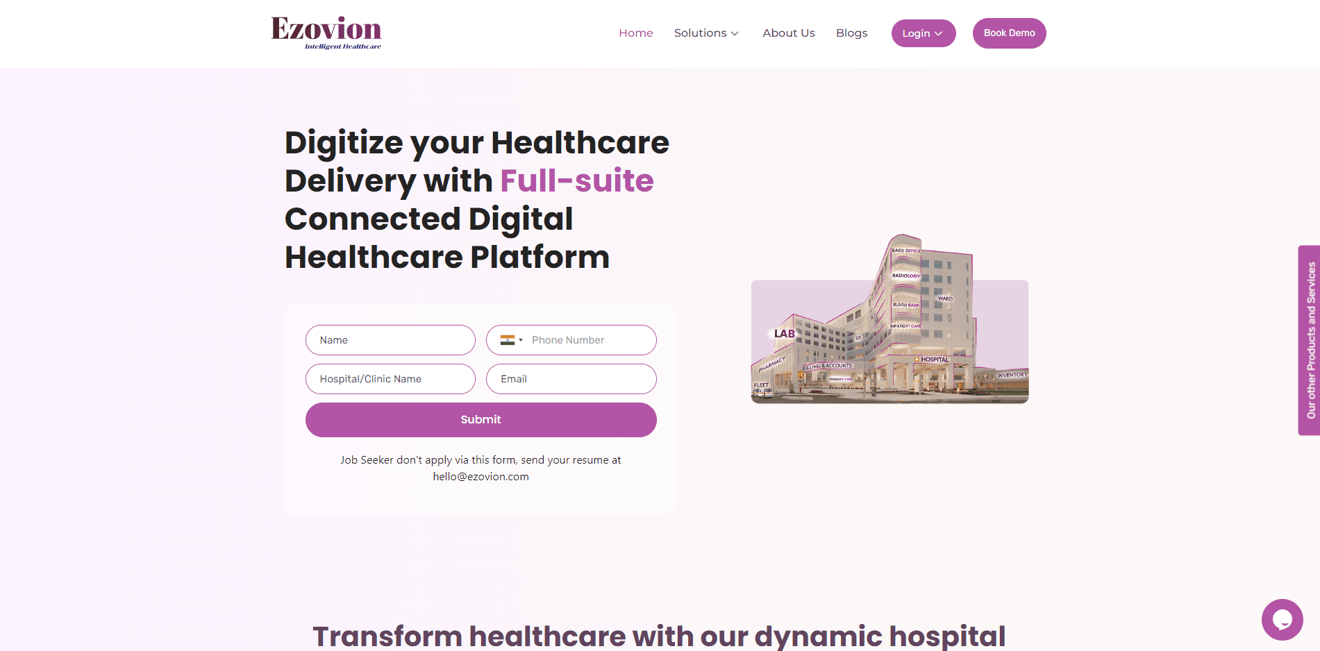 Ezovion is a leading suite of intelligent healthcare software fostering patient-centric care, catering to the evolving needs of providers, patients, TPAs, and other stakeholders. Powered by AI/ML, IoT integration, and connected care, we enhance patient-provider experiences and enable efficient care management across entire hospital ecosystems with unmatched functionality
