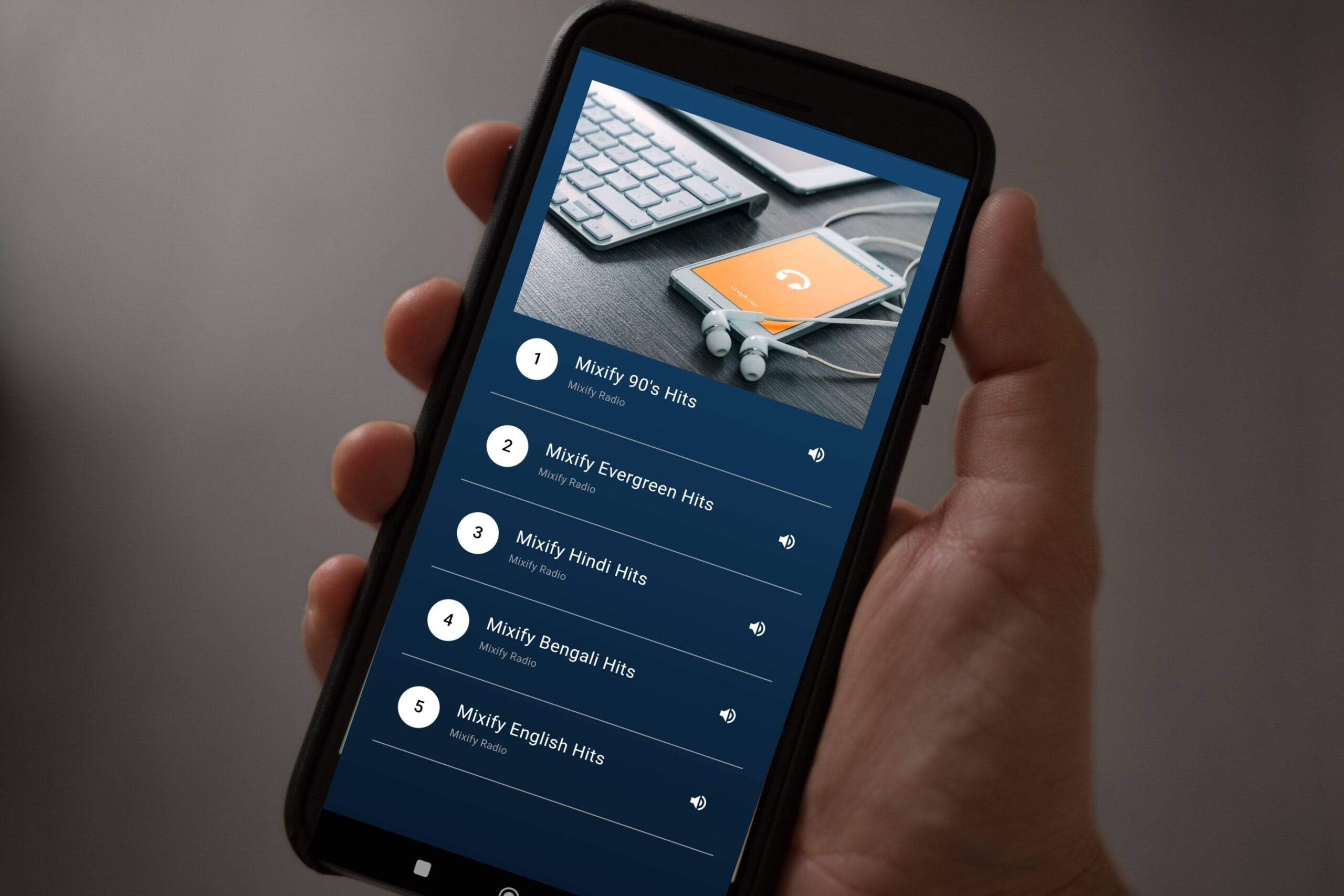 This is an app developed for a Kolkatta client.The app is a online radio containing 5 categories viz:-Hindi hits,English hits etc.